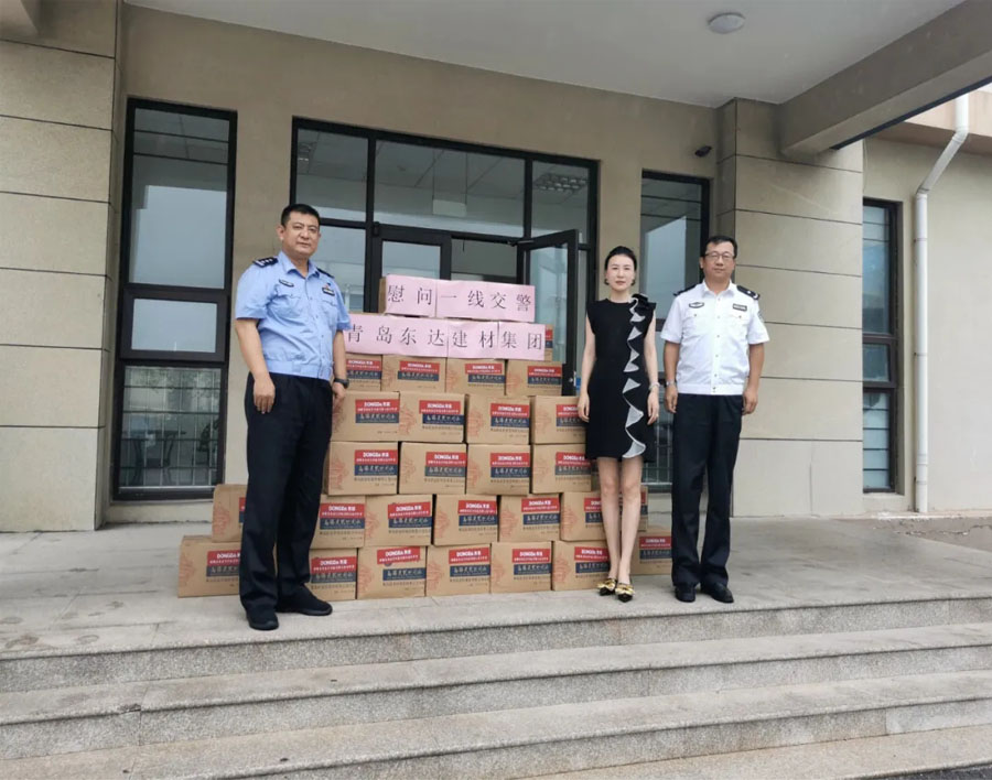 8月5日,集團總經(jīng)理張娟帶隊,將500箱礦泉水送達嶗山區(qū)交警大隊。